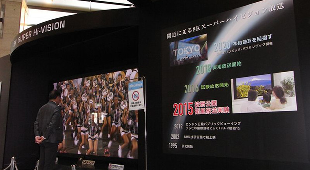 すでに8Kのカメラやレコーダー、ディスプレイなど収録や制作、視聴に必要な個々の機材は毎年出展されており、ロンドンオリンピックやFIFAワールドカップなどで使われている。番組を制作する主要な機材がひと通り揃い、放送するための圧縮や伝送方式などもARIBやSMPTE、ITU-Rなどで規格化が進んでおり、伝送実験なども行われてきている。今年のNHK技研公開ではそうした機材を実践投入するための最終調整の段階といえ、渋谷のNHKからの映像を技研の会場で受信するデモを行っていた。