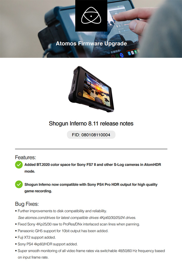 ファームウェアが更新。使用できるSSDメディアも一新された。またATOMOS株式会社のFacebookでは、日本語でファームウェアアップデートの情報だけでなく、活用方法など様々な役に立つ情報を発信しているので、こちらも確認しておくとよい