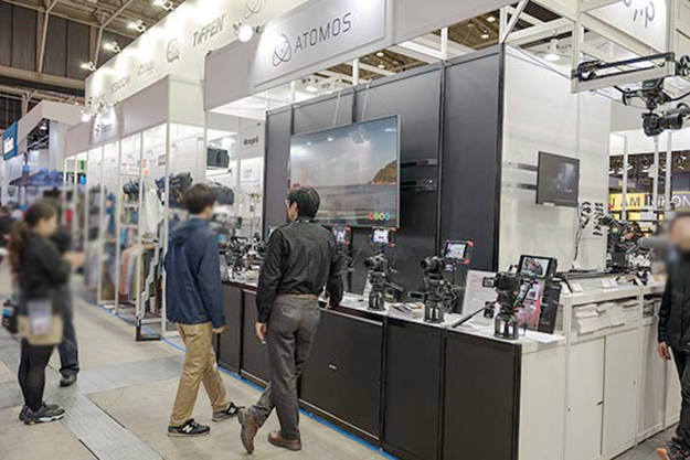 ATOMOS製品群がずらりと並ぶ壮観な光景。今や外部収録機はスチル動画には欠かせない