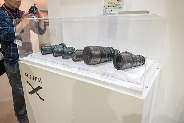 新型シネマレンズ群。残念ながら真ん中の一本を除き、モックアップであり実機実働展示はなかった