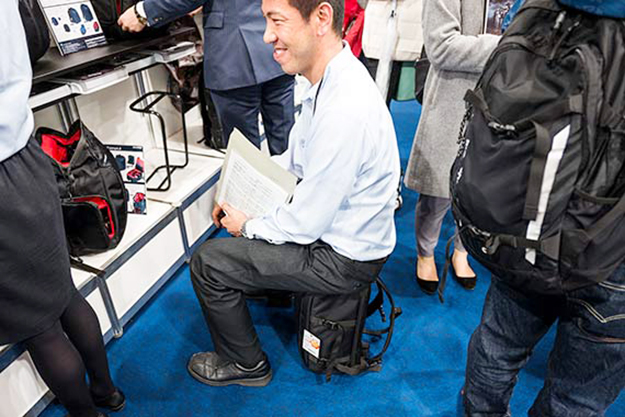 変わったところではカメラバック「IS」の展示もあった。この名前は「いす」と読む。そう。何と座れるカメラバッグなのである!残念ながらフレーム形状の都合で立つことは出来ないため、箱馬としては使えないそうだが、それでも座れるだけで撮影の幅はぐっと広がる。何よりも休憩時の疲れの取れ方も違ってくる。是非とも欲しい撮影グッズだ。