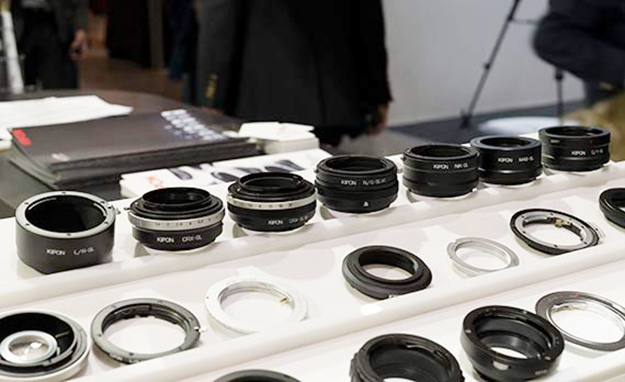今回の隠れた主役がKIPONだ。筆者は実はこのブースのために今回CP+に参加したと言っても過言ではない。KIPONの合弁会社である各社マウント(何とLeica SLマウントを含む!)対応のHandeVisionレンズだけでなく、1月に既に発表発売済みのLeica SL向けアダプター群のうち、マクロ機能付きのものが実質日本初展示されたのだ。