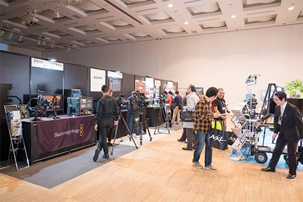 さて、ここまで紹介してきて「あれ?毎年恒例のプロ向け動画コーナーはどうなったんだ?」と思われた方も多いだろう。もちろん「プロ向け動画コーナー」そのものは存在した。ただし、本会場から離れた別の建物に、木金の二日間だけというカタチでだ。プロ向け動画セミナーのおまけとして、セミナー室のすみに小さく作られるコーナーとなってしまったのだ。しかし、今時スチルカメラユーザーで動画に興味を持ってない人は少数派であるため(そもそもスマホで写真が撮れる今、スチルカメラをわざわざ買うのは写真以外に動画を撮る目的が非常に大きなウェイトを占める)、この遠く離れたコーナーに大勢の人が集まるという、一風変わった光景が誕生してしまった。