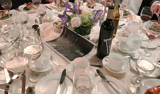 授賞式の前にはディナーがサーブされ、各テーブルに給仕が料理を運んでくる。