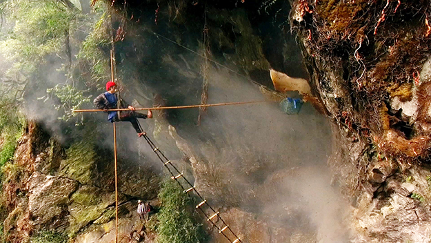 映画の中で重要な意味を持つハニーハンティングのシーン。最も撮影が困難とされる撮影だが、ここでもドローンが効果的に使われた