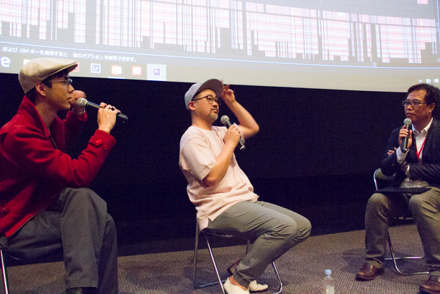 トークセッションはスクリーンの前で行われた
