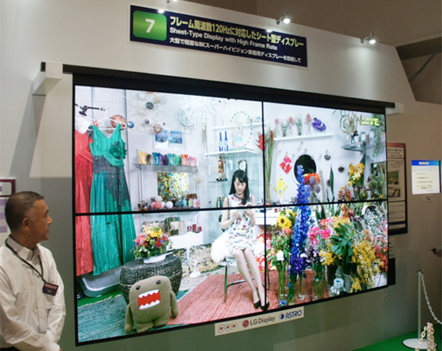 フレーム周波数120Hzに対応したシート型ディスプレイ。フレーム周波数120Hzに対応した4Kパネルを4枚貼り合わせた8Kシート型有機ELディスプレイ