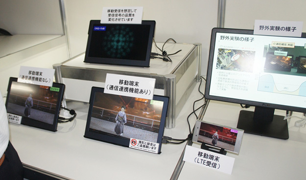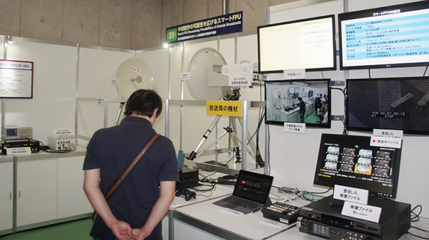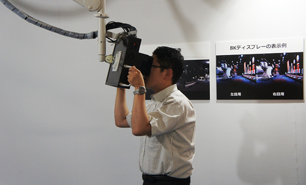 すでに8Kは制作に必要な機器は開発されており、実際の運用に必要なFPUやIPを利用した伝送技術など現行の放送と同じレベルの運用を可能とする機材が求められいる。今回はそうした機材と共に裸眼で立体視できるインテグラル方式のディスプレイや新たな撮影方式が披露された。インテグラル方式のディスプレイは試作的なものから、スマホに組み込まれた状態のものを実際に手に取って視聴が行え、かなり実用性のあるものとなっている。また、撮影に関しても専用のカメラではなく多視点カメラを利用するなど、ハードルも低くなってきた。