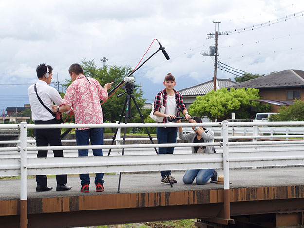 照明はカメラバッテリーで点くLEDの軽いものを大中小の計3つ、アイキャッチ用に手のひらサイズのものを1つ準備した。録音はブームマイクとワイヤレスマイク3つを各シーンで俳優が付け、4チャンネルレコーダーの操作とブームマイクを甲府では商工会議所の方にお願いし、ほかの現場では、そのシーンに出番のない俳優が担当して、最終的に音が悪かったらアフレコするというスタンスでのぞんだ。