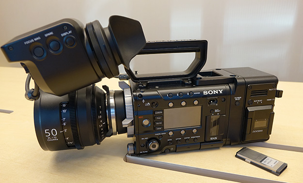 岡橋氏:カメラ一体型というのはひとつのアイデアかと思うのですが、F55はカメラ部だけで撮影するとXAVCが記録できて、後ろにAXS-R5もしくはAXS-R7をつけていただくと、RAWレコードができます。ドッカブル型レコーダーであるがゆえ、現在F55/F5を所有するお客様に対して、継続的な機能追加を提供することができます。