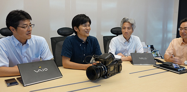 これから普及が始まろうとするX-OCNは、公式に発表された部分以外のところで、まだ知られていない部分も多い。そこで今回は、X-OCNの開発に携わったソニーの山下 仁氏、岡橋 豊氏、後田 薫氏、広瀬 正樹氏の4名に、それぞれの立場からお話しを伺うことにした。