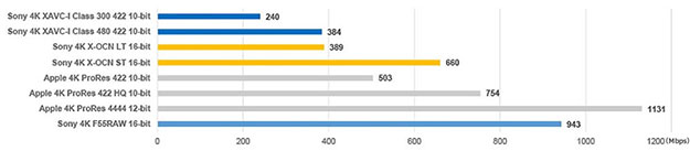 X-OCN LTは422/10bit、480MbpsのXAVC Intraとほぼ同じデータ量