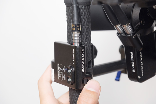 ステディカムなどのスタビライザーと組み合わせるだけでなく、リグを組んだカメラのワンマンオペレーションにも対応できる。この場合レシーバーマスターモーターとスレーブモーターを組み替えて有線式のコントローラーを接続する。このように最小限の組替えで済むのがこの製品の特長と言えるだろう。