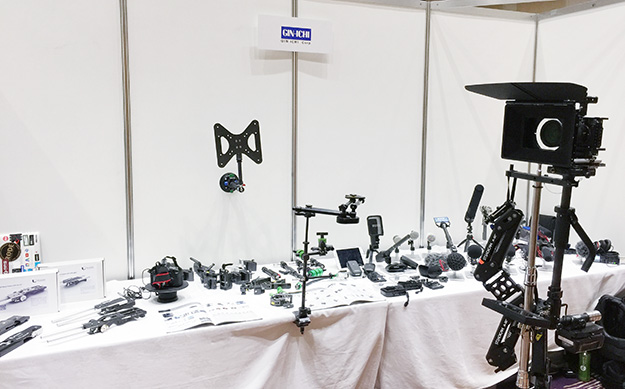 いつものようなステディカムの展示は控えめで、撮影時の小物系ガジェットを数多く出展。同社が代理店となるRODE(マイク)は、ほぼフルラインナップで展示。もちろん、先日発表されたDSLR用のクリップオンマイクVideoMic Pro+もある。