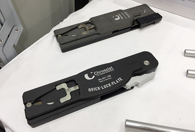 今回の新製品としてはソニー互換のフネクイックロックプレートだ。純正フネの微妙なクリアランスをカメラではなくロック側がガッチリ動いて固定し、特に後ろのロック部分は完全に下方向に引き抜く構造なので超望遠のテレ端でもプレートガタはない。