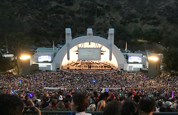 ハリウッド・ボウルは音楽好きの方ならご存知かもしれない。ハリウッドサインに近い山の中腹の、広大な地形を利用して作られた野外音楽堂である。座席数17,376席という規模を誇り、毎年6月から9月までがシーズンである。シーズン中はクラシックやジャズ、ロックまで幅広いジャンルのコンサートが、連日連夜開催される。今回の「John Williams:Maestro of the Movies」は3日間連続で開催されたにも関わらず、チケットはほぼ「SOLD OUT(売り切れ)」に近い状態でその人気ぶりがうかがえた。
