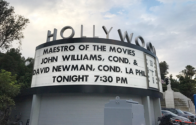 ハリウッド・ボウル。入口にあるサイン。ジョン・ウィリアムズの名前が見える