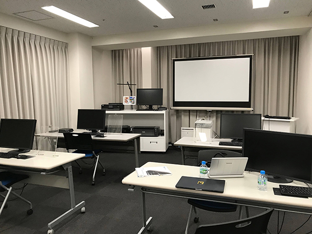 モニター勉強会の会場となったEIZOガレリア銀座。準備中の段階の写真なのですが、キャリブレーションからHDRまで、実機を見て検証をすることができました
