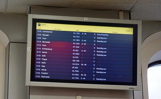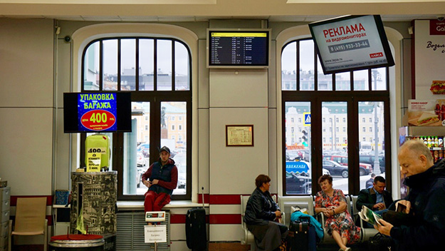なお、この駅には広告専用のディスプレイとフライトインフォメーション(ロシア語と英語)を表示する表示されるディスプレイがあった。しかし残念ながら広告募集中の表示のみで、実際の広告映像はこのときには見ることができなかった。