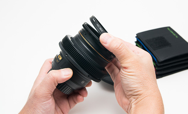 フィルターにホルダーを装着し、レンズ側にはアダプターを装着する