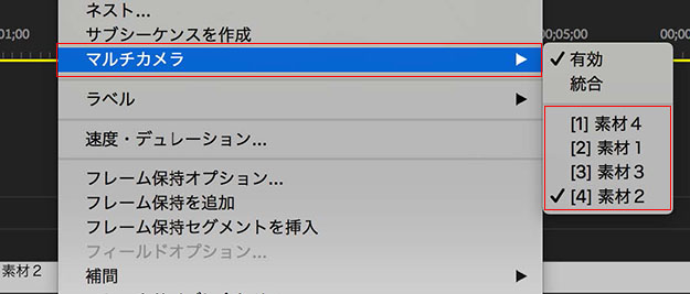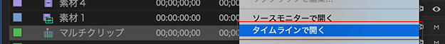 そのまま使うと一つの塊になってしまうが、マルチクリップシーケンスを右クリック→「タイムラインで開く」で開けば素材の並びも確認することができる