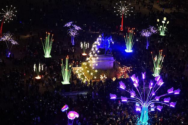 光の作品ではベルクール広場での様々な花をデザインした大きな光のモニュメント群が挙げられる。この広場は人々が最も多く行き交う広場で、毎年注目度も高いのだが、今年はここに光の祭典らしいストレートな攻め方をしていた。