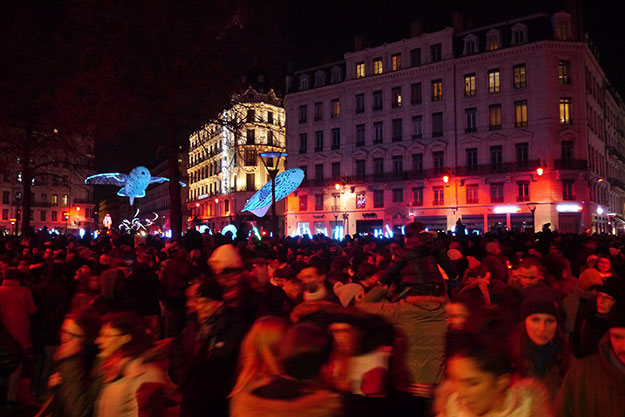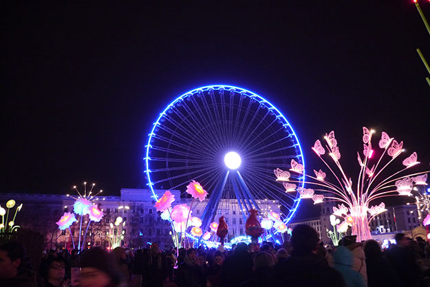 フェスティバルはリヨン中心部の広いゾーンを使い、夕方からあらゆる交通が乗り放題のフェスティバルチケットが割安または無料で発行され、行政も市民も全てが一体となってこの祭典と訪れる人々を受け入れている。この数日にヨーロッパだけではなく世界中から何百万人もの人が訪れるため、市内中心部のホテルは早くから空きがなくなる状況となり、宿泊代も高騰する。祭典は夜20時から始まり24時に終了で、開催期間中は町中に人がごった返し、夜間の屋外にもかかわらず12月とは思えない熱気と賑わいを帯びる。
