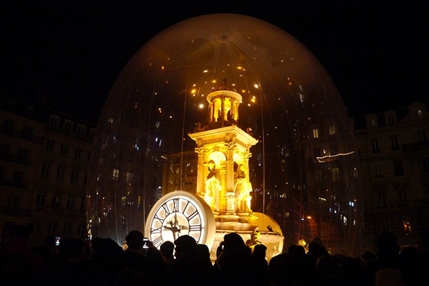 ベルクール広場から見える位置の郵便局とベルタワーを用いたプロジェクションマッピングで、二人の子供がゲームの世界に入り込むといったもの。Mr.Beamという古くからマッピングに携わっているチームが手がけ、二つの建物をうまく連動させながら、解りやすいゲームと現実が混ざった世界を作っていた。