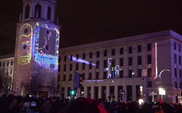 この祭典では多くのプロジェクション演出、プロジェクションマッピング作品が街の様々なところを彩り、多くの人を集める人気の企画になっている。