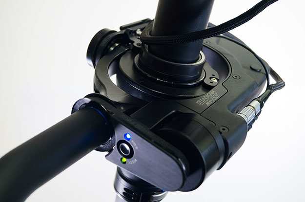 それではいったい何がここまで評判なのか?一番の理由はステディカムらしさ、思った通りにコントロールできるそのフィーリングを一切殺さないことだ。そして、ステージのコントローラーとジンバル付近に搭載されるモーターユニットの約1kgのシステムだけで、このシステムが完結していること。ビッグリグユーザーからすれば、1kgなんてほとんど重量増とは感じられないだろう。負荷が増えないのに安定性が向上するなんて、とんでもない!