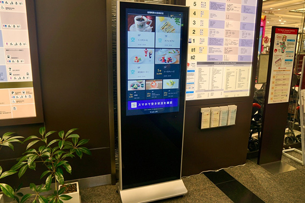 「VACAN」は、駅前の大規模商業施設内の飲食店の空席情報を、上層階にある飲食フロアではなく、地下や1階といった離れた場所で表示するものだ。せっかく上層階まで行ってから空席がないとなると顧客満足度はどうしても低下してしまう。