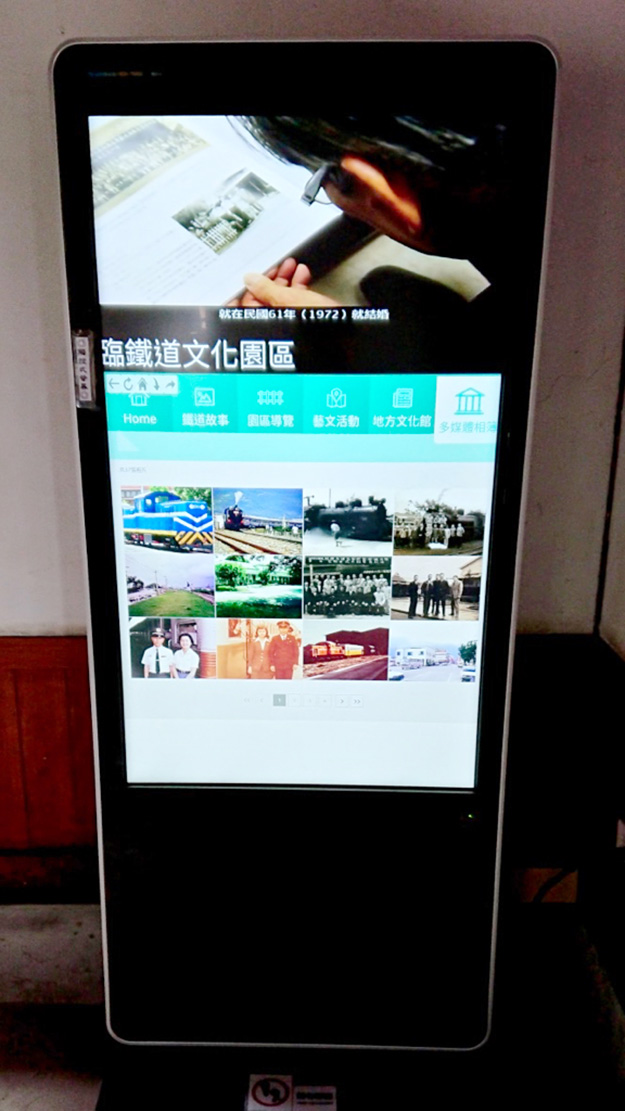 「花蓮鉄道文化園区」の案内タッチパネル。使い勝手は普通