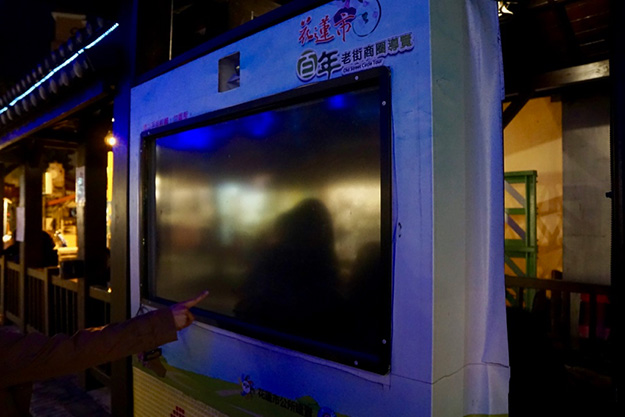 さて、本稿は観光ガイドではないので、花蓮のデジタルサイネージのレポートに戻ろう。台北程ではないが、街の商店には多数のデジタルサイネージが見られた。面白かったのは、最近ヨーロッパや日本でも注目されているスタイリッシュなコインランドリーが花蓮にもできていたことだ。まだ開店したばかりのようだが、店内にはデジタルサイネージで利用方法を説明する映像が流れていた。「花蓮鉄道文化園区」という鉄道博物館には、館内の展示物を探すことができるタッチパネル式のサイネージがあった。残念ながら中文簡体のみの対応だ。