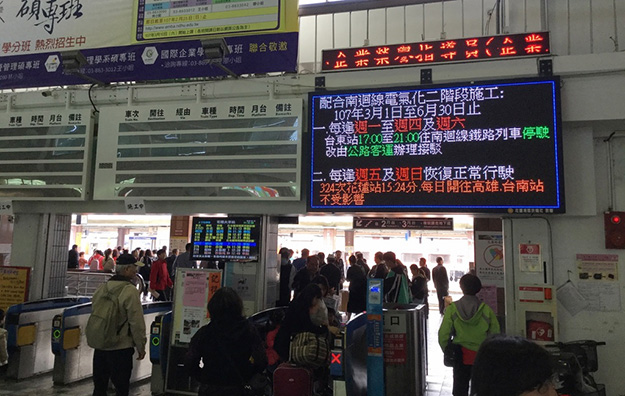 そこで2泊3日の台北だけの滞在内容を変更して、台北から日帰りで花蓮に行くことを全員で決定したのである。台北から花蓮までは電車で2時間から3時間、片道が日本円で1,500円である。我々は最初に台北駅に集合すると、駅のメインホールの壁面と柱に新たなデジタルサイネージが設置されていた。昨年末以降のことだと思われる。実際に現場で見ると、写真以上に視認性が高いものになっていた。なお花蓮行きの電車は満席になりやすいので、こちらの台鐵のサイトから事前にネットで予約しておくことをお勧めする。