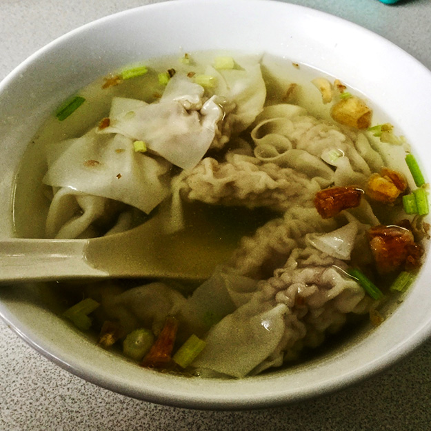 「戴記扁食」のメニューはこのワンタン一択で65元。セロリと青ネギが効いている