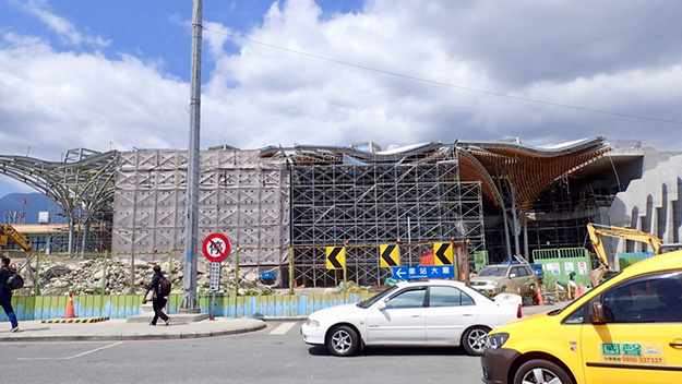 花蓮駅はいま新しい巨大な駅舎の工事中のため、駅前は雑然とした状態である。今回は日本人10名でやってきたのだが、電車内にも駅にも日本人の姿はなかった。これは街の中でも、帰りの電車でも結局日本人に合うことはなかった。これが地震の影響なのかはよくわからない。花蓮の街のサイズはそんなに大きくない。中心市街地は駅から歩いて20分位の場所にあり、その先は海で、東に200キロほど先には波照間島がある。気候が良い時期であれば花蓮駅からぜひ歩いて街をゆっくり散策することをお勧めする。