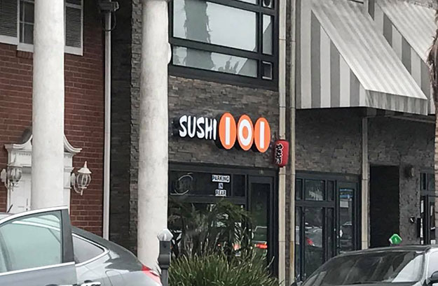 ちょっと、こちらの写真をご覧頂きたい。これは、ロサンゼルスにある、日本人経営ではないお寿司屋さんである。入口の上に、赤い提灯が見えるが…。