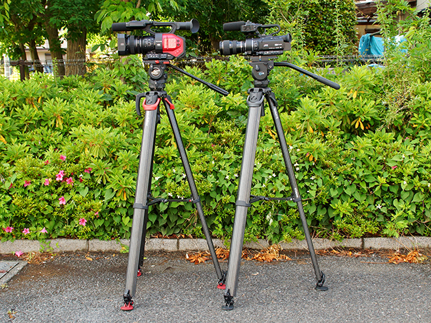 今回お借りしたのは、Sachtler FSB6 FTMSと、Vinten Vision blue3 FTMSの2セットで、どちらも適正荷重バランスが3~4kg程度なので業務用ハンドヘルドやRIGを組んだDSLR辺りがベストな組合せだ(こう書くとFSB6は最大8kgまで載るはずと思われる方もいるが、カメラの重心位置(重心高)で荷重は変化する物で、それは三脚の性能曲線で出されているのでそこを参考にして欲しい)。