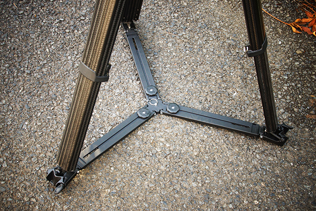 また、従来のSachtlerやVintenの脚と先端の爪構造が違うため、ボルトオンでは付かない。筆者はManfrotto製の汎用グランドスプレッダー(Manfrotto SKU 165)を装着してみたが、脚の上げ下げに関してはミッドスプレッダーより確実にやりやすい。だが、専用品では無いために若干の加工とその知識は必要になる。