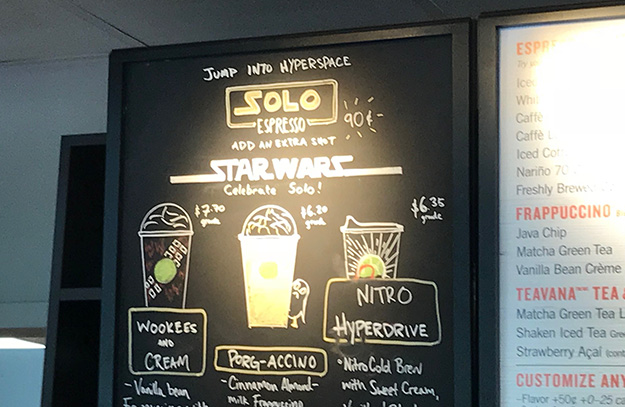 スターバックスのプレシディオ店(サンフランシスコ)では、「ハン・ソロ」公開記念の特別メニューを期間限定で販売していた