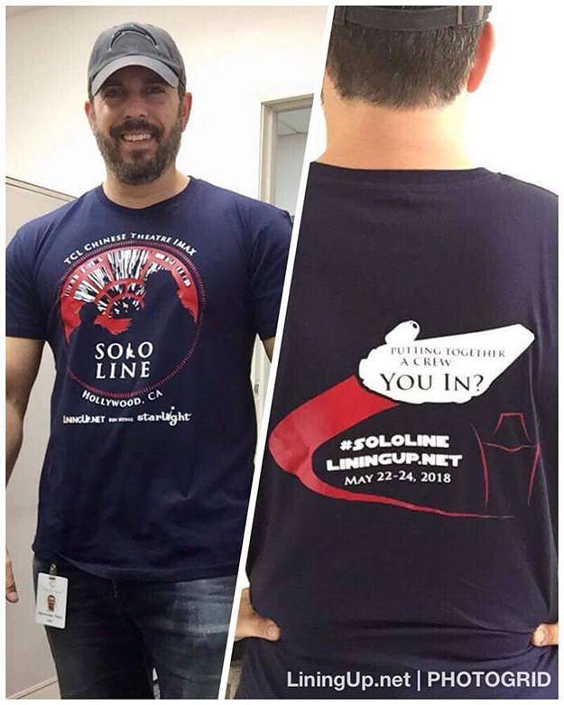 今回のイベントの為に主催者が作ったTシャツ。「Solo Line」の文字が見える(主催者提供)Photo courtesy:LiningUp for Star Wars Hollywood @ Facebook
