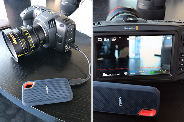BMPCC 4Kの試作機にSanDisk ExtremeポータブルSSDを接続してみた。ちゃんと認識してくれた