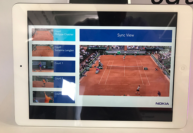 ※今回のテクノロジーデモでは、5G配信のイメージとして、ローラン・ギャロスにある複数のテニスコートでの試合の模様をタブレット端末で視聴者が選択してみる事ができる体験デモを用意していた。5Gのローカルエリア配信を意識したものだ。