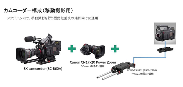 戒能氏:カムコーダ―から編集環境まで、既に慣れ親しんだ物と大きな差もなく、普通に使えている。という嬉しい意見を頂いています。今回キヤノンのCN7を装着した移動撮影用のカメラを扱ってくれたのは女性のカメラマンで、普段はENGカメラを使ってニュースの取材をしているそうですが、8Kカムコーダ―を使いこなしてくれました。