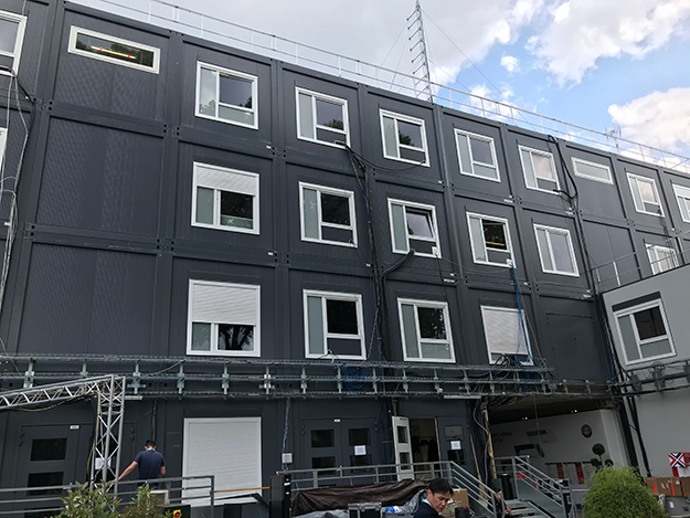 テクノロジーデモの会場は、“Television Zone Media”と呼ぶ国際映像配信センターを中心とした、各国の放送局が集まる建物のテラス。ここではテレビの歴史に触れる展示から、5G配信のコンセプトや、VRのデモと並行してシャープ製の70型8Kテレビが設置され、同じくシャープ製8Kカムコーダ―で収録されたという映像が再生されていた。