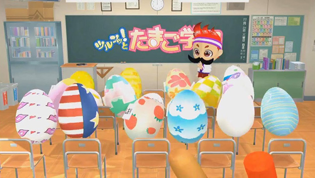 教室を用意し、プレイアリアの中に卵を配置。学校という設定なので、「起立!」で立ち上がり「礼!」でお辞儀をする。たまごたちも「起立」して「礼」をする。リハーサルでは確かにうまくいっていたのだけど、人が多すぎてキャプチャ・カメラからの死角が増えすぎてしまい、足のトラッキングが外れてしまったり、たまごがちらついてしまったりとなかなか大変だった。