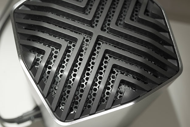 まずはプロダクトの印象から。一言、美しい。さすがBlackmagic Designと言ったところか。なによりMacのスペースグレーとほぼ同じカラーリングでMacBook Proとの一体感が素晴らしい。横に並べていて違和感が無い。大きさは第一印象として「でかい」しかし「軽い」。Mac Pro(Late 2013)(通称ゴミ箱)と同じくらいのサイズ感とイメージしてもらえると良いだろう。接地面と本体は浮いており、下から吸気して、上部の排気口へ通し熱を逃がす。ちなみにファンはものすごく静かだ。そうか、この大きさは静音性を保つための冷却するデザインなのだ、と納得した。