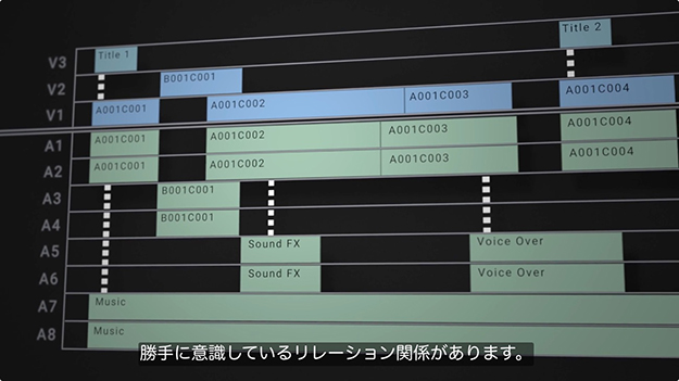 劇中ではマグネティックタイムラインについてFCPXのインタフェースデザイナーだったサーブ氏のコンセプト説明を幹に、その他のユーザーの証言を絡めてマグネティックタイムラインの紐解き方が展開される。