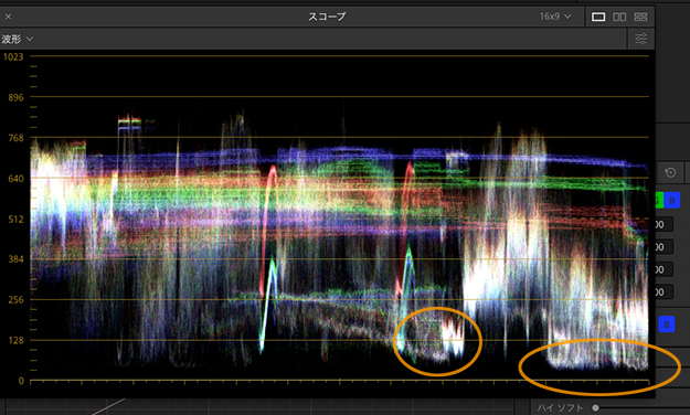こうして、広い範囲を同時に処理することでトーンジャンプを防ぐ仕組みになっているのだ。今回の例では問題なかったが、とてもコントラストの低い(ねむい)映像の場合はガンマとリフトをもう一度わずかに調整する必要があるかもしれない。