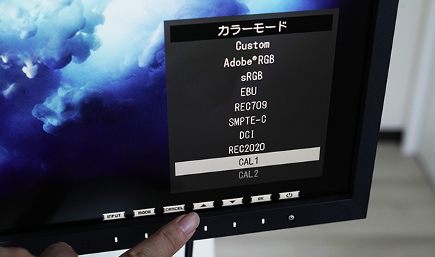 自分が校正したプロファイルを含め、カラーモードをモニターのボタンから選択できる